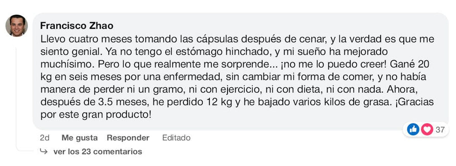 "Quiero contar mi experiencia con Liver Detox porque me ha ayudado no solo a bajar de peso, sino a mejorar mi salud en general. Durante años luché con exceso de peso y falta de energía sin saber por qué. Descubrí que el hígado graso era parte del problema, y en cuanto comencé a usar Liver Detox, mi cuerpo respondió a los cambios de alimentación y ejercicio que antes parecían inútiles. Poco a poco, fui perdiendo esos kilos extra y sintiéndome más lleno de energía. Saber que el hígado graso estaba detrás de todo esto ha sido revelador, y por eso quiero que otros conozcan los beneficios de cuidar su hígado. Esta mezcla ha cambiado mi vida, y realmente creo que puede ayudar a muchas personas." — Marcos W.