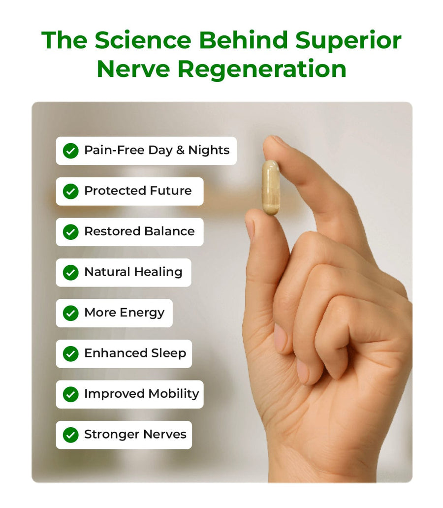 Nerve Support Blend™: A 100% natural, scientifically crafted formula that targets neuropathy at its core. Regenerates nerves to eliminate burning, tingling, numbness, shooting pains, balance issues, sleep problems, and mobility challenges naturally.