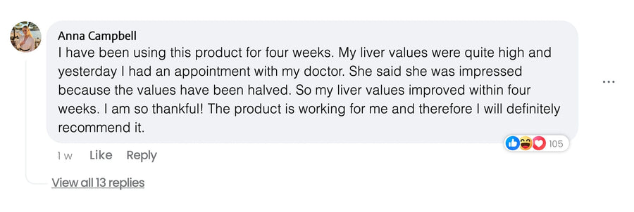 I started using the Liver Detox Blend to improve my liver health and I have to say it has had a huge impact! After just a few weeks I noticed a clear improvement. I have been using the product for 4 months now and my overall well-being has improved significantly. My energy levels have increased and I have finally started losing weight, something I was unable to do before.